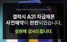 27일 삼성전자에 따르면 이날부터 쿠팡, 11번가, 삼성전자 홈페이지를 통해 사전 판매를 시작한 갤럭시 A31 온라인 자급제 모델이 완판됐다. 현재 쿠팡에서 갤럭시 A31을 검색하면 ‘자급제폰 사전예약이 완판됐다'는 안내문이 뜬다. 11번가에서도 제품이 완판돼 검색이 막혀 있다.