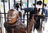 전두환 전 대통령의 재판이 열리는 27일 광주 동구 광주지법 정문 앞에서 5·18 민주화운동 유족이 철장 안에 넣은 ‘전두환 치욕 동상’을 한 남성이 신발로 때리고 있다. 광주=뉴스1 |