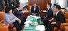 27일 국회 예결위원장실에서 김재원 예결위원장(가운데)과 여야 간사들이 긴급재난지원금 관련 추가경정예산(추경)안 논의를 위해 회동하고 있다. [연합] |