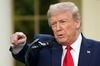 도널드 트럼프 미국 대통령이 27일(현지시간) 백악관 로즈가든에서 기자회견을 열어 코로나19 대응 등에 대한 기자들의 질문을 받으려고 손가락으로 가리키고 있다. 워싱턴 AFP 연합뉴스 |