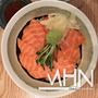 돈부리 전문점답게 열 가지가 넘는 다양한 메뉴가 준비되어 있다. 연어, 아보카도, 참치, 연어알, 성게알 등의 해산물이 올라간 것부터 새우튀김, 돈까스, 닭다리살, 쇠고기 등이 올라간 것까지 메뉴 선택권이 넓은 것이 장점이다. 대표 메뉴는 싱싱하고 큼직한 연어가 올라간 사케동으로 3000원을 추가하면 더 푸짐하게 연어를 즐길 수 있다.
