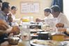 문재인 대통령이 1일 서울 종로구 삼청동에 위치한 청와대 인근 곰탕집을 찾아 참모진과 함께 식사를 하고 있다./청와대 제공 |