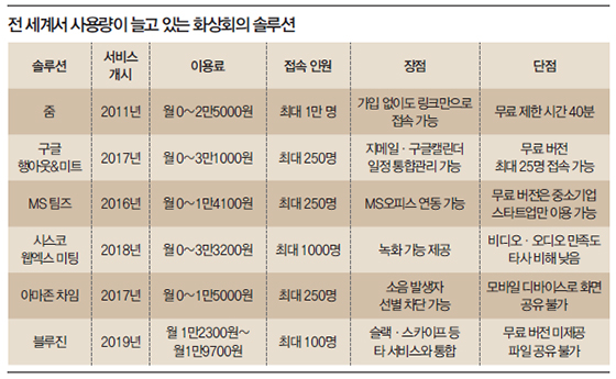 그동안 화상회의 솔루션 등에 집중하지 않았던 기업들과 개인들이 이번 계기로 어떤 서비스가 더 직관적이고 편리한 서비스인지 분간하게 되는 계기가 될 것”이라고 지적했다. 또 다른 관계자도 “현재 각종 영상회의나 IT 솔루션 관련 기업들의 춘추전국시대다. 하지만 결국 최종적으로 대중의 마음을 사로잡는 업무 솔루션은 몇 개밖에 안될 것이다. ‘포스트 코로나’ 시대에도 각광받기 위해서는 서비스의 본질을 들여다보며 장단을 분석해봐야 한다”고 설명했다.