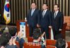 제21대 국회 더불어민주당 제1기 원내대표 후보자 합동토론회가 6일 오전 서울 여의도 국회에서 열린 가운데 김태년(왼쪽부터), 전해철, 정성호 후보가 참석한 의원들에게 인사를 하고 있다.(사진=노진환 기자) |