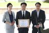 이경 더불어민주당 상근부대변인(왼쪽부터), 구본기 더불어시민당 최고위원, 서대원 최고위원이 6일 오후 서울 양천구 남부지검에서 부동산 관련 의혹 등으로 논란을 빚은 시민당의 양정숙 국회의원 당선인에 대한 고발장을 제출하기 전 입장을 밝히고 있다. (사진=연합뉴스) |