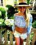 공개된 사진 속 브리트니 스피어스는 화려한 배꼽티셔츠에 핫팬츠를 입고 포즈를 취하고 있다. 치골까지 보이는 아찔한 노출이 시선을 사로잡는다.