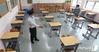 4일 서울 양천구 금옥여자고등학교에서 선생님들이 교실 책상 간격을 벌리고 있다. 2020.5.4 © News1 |