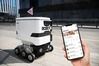 서울 강서구 마곡동에서 로보티즈가 개발한 실외 배달 로봇이 '식권대장'을 통해 주문한 직원들의 점심을 배달하고 있다. |