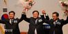 21대 국회의 더불어민주당 첫 원내대표로 선출된 김태년 의원(가운데)이 7일 국회에서 열린 당선인 총회에서 경쟁 후보인 전해철·정성호 의원과 함께 당선 인사를 하고 있다. 김영민 기자 viola@kyunghyang.com |