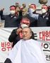 최응식 전국주한미군한국인노동조합 위원장이 지난 25일 오전 청와대 분수대 앞에서 방위비 제도 개선을 요구하며 삭발하고 있다. [이미지출처=연합뉴스] |