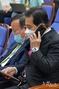 미래통합당 심재철 원내대표 겸 당대표 권한대행이 8일 국회에서 열린 2020년 원내대표 및 정책위의장 선출을 위한 당선자총회에서 통화를 하고 있다.