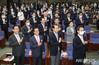 미래통합당 주호영 원내대표 후보와 이종배 정책위의장 후보, 권영세 원내대표 후보와 조해진 정책위의장 후보를 비롯한 당선자들이 8일 서울 여의도 국회에서 열린 미래통합당 2020년 원내대표 및 정책위의장 선출을 위한 당선자총회에서 국민의례를 하고 있다. |
