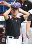 kt 강백호가 웜업을 나서며 인사를 하고 있다.
