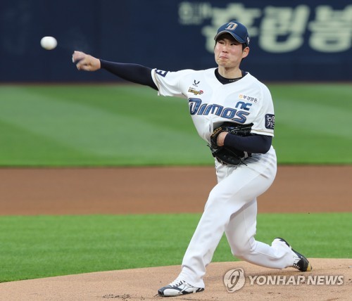 (창원=연합뉴스) 우정식 기자 = 8일 경남 창원NC파크에서 열린 프로야구 LG-NC 경기에서 1회초 NC 선발투수 이재학이 투구하고 있다. 2020.5.8