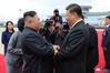 김정은(왼쪽) 북한 국무위원장이 지난해 6월 평양 순안공항에서 북한 국빈방문을 마친 시진핑 중국 국가주석을 환송하고 있다. 평양=조선중앙통신 연합뉴스 |