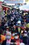 신종 코로나바이러스 감염증(코로나19) 사태에 따른 정부의 긴급재난지원금 신용·체크카드 충전 신청이 11일 오전 7시에 시작된다. 사진은 경기 성남 중원구 둔촌대로 모란시장에 마스크를 쓴 시민들로 가득 찬 모습. /이덕인 기자 |
