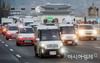 2일 서울 세종대로에서 안전운전 다짐 선서를 마친 집배원들이 초소형 전기차를 타고 퍼레이드를 하고 있다. /문호남 기자 munonam@ |