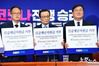 더불어민주당 이해찬 대표와 김태년 원내대표 등 지도부가 11일 오전 국회에서 열린 당 최고위원회의에서 긴급재난지원금 기부를 서약하고 기념촬영을 하고 있다.