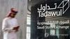 사우디 수도 리야드에 세워진 증권거래소 로고 옆을 지나는 사우디인 |