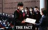 신임 검사들이 11일 오후 경기도 과천시 정부과천청사 후생동 대강당에서 열린 신임 검사 임관식에 참석해 추미애 법무부 장관에게 임명장을 수여받고 있다. /뉴시스 |