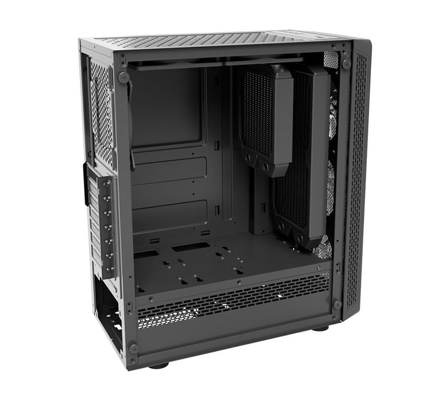 이 케이스에는 전면과 후면에 120mm ARGB팬 4개가 기본 장착됐으며, 상단에도 120mm 블랙 팬 2개가 기본 장착되어 시스템 내부의 열을 효율적으로 식혀준다. 전면에 120mm/240mm 수냉 라이터도 장착 가능해 수냉PC 시스템도 만들 수 있다.