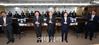 홍남기 부총리 겸 기획재정부 장관이 5월4일 정부세종청사에서 열린 확대간부회의 시작에 앞서 기재부 간부들과 함께 코로나19 대응에 헌신하는 의료진 응원.격려를 위해 ‘덕분에 캠페인’ 행사로 “의료진 감사합니다!”를 외치며 수어 동작을 하고 있다. 기재부 제공 |