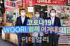 손태승 우리금융그룹 회장(사진 오른쪽 첫번째)과 권광석 우리은행 행장(사진 왼쪽 첫번째)이 지난 8일 남대문시장을 방문해 상인들의 영업상황을 경청하고 기념 사진을 찍고 있다. (자료사진, 우리금융 제공) |