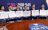 더불어민주당 이해찬 대표와 김태년 원내대표, 최고위원들이 지난 11일 국회에서 열린 최고위원회의에 참석해 긴급재난지원금 기부 서약서에 서명한 뒤 기념사진을 찍고 있다. 김영민 기자 |