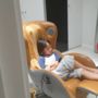 동영상은 이휘재가 자신의 방 안마의자에 앉아서 TV를 보고 있는 아들 서언이를 촬영한 것으로, 서언은 안마의자에 편하게 앉아 있다.