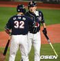 [OSEN=부산, 최규한 기자]9회초 무사 선두타자로 나선 두산 오재일이 동점 우월 솔로포를 날리고 김재환과 인사를 나누고 있다. / dreamer@osen.co.kr |