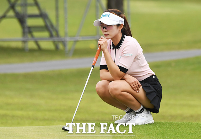 [더팩트ㅣ양주=배정한 기자] 한국여자프로골프(KLPGA) 투어 KLPGA 챔피언십 1라운드가 14일 경기도 양주시 레이크우드CC에서 열린 가운데 안소현(왼쪽)과 유현주가 18번홀에서 퍼팅을 준비하고 있다.