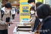 지난달 24일 서울 영등포구 여의도고등학교에서 학생들이 신종 코로나바이러스 감염증(코로나19) 확산 방지를 위해 워크스루 방식으로 전국연합학력평가 시험지를 받고 있다. /문호남 기자 munonam@ |