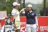박채윤(오른쪽)과 티박스에서 팔꿈치 인사를 나누는 이정은. |