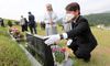 안철수 국민의당 대표가 17일 오전 전남 담양군 월산면 천주교공원묘원을 찾아 조비오 신부 묘비를 어루만지고 있다. 뉴스1 |
