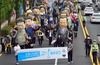 지난 16일 오후 광주 동구 금남로 일대에서 시민들이 40년 전 항쟁 당시 숨진 희생자 등의 모습을 재현한 인형을 쓰고 거리 행진을 벌이고 있다. 광주=뉴시스 |