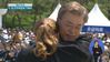 문재인 대통령이 지난 2017년 열렸던 5·18 민주화 운동 기념식에서 눈물 흘리는 유족을 뒤따라가 안아주면서 위로하고 있다.(사진-KBS 캡쳐) |