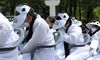 5·18 민주화운동 40주년을 하루 앞둔 17일 오전 광주 북구 운정동 국립 5·18민주묘지에서 열린 추모 행사에서 소복 차림의 유가족들이 눈물을 훔치고 있다. 연합뉴스 |