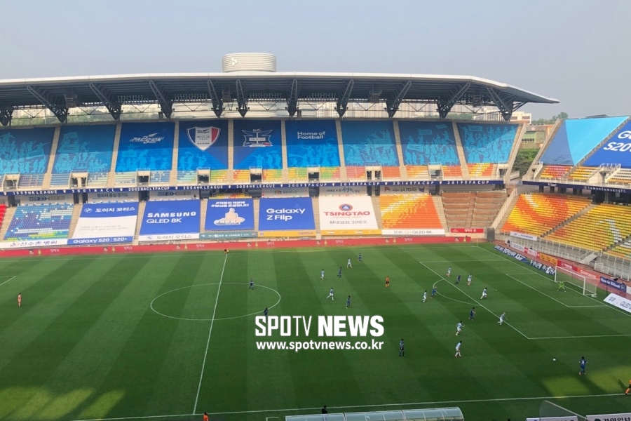 명승부에도 '옥에 티'가 있었으니 관중석의 함성이 없었다는 것. 코로나19 확산 방지를 위해 K리그는 무관중으로 경기를 진행하고 있다. 골과 멋진 플레이에 나오는 함성 그리고 탄식과 안도의 한숨은 축구 경기장을 특별하게 만드는 요소다.