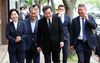 더불어민주당 이낙연 코로나19국난극복위원장이 18일 광주 상무지구의 한 음식점에서 21대 총선 호남 지역 당선인들과 오찬을 위해 이동하고 있다. /연합뉴스 |