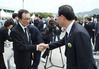 악수하는 이해찬·주호영 더불어민주당 이해찬 대표(왼쪽)와 미래통합당 주호영 원내대표가 18일 광주 동구 옛 전남도청 앞에서 열린 ‘40주년 5·18 민주화운동 기념식’에서 만나 악수하고 있다. 광주=청와대사진기자단 |