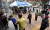 정부 긴급재난지원금 현장 접수 첫날인 18일 오전 서울 성동구 금호2, 3가동 주민센터에서 시민들이 긴급재난지원금 신청을 위해 길게 줄을 서고 있다. 남정탁 기자 |