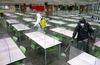 신종 코로나바이러스 감염증(코로나19)확산으로 그동안 연기됐던 고3 학생들의 등교 개학을 하루 앞둔 19일 서울시 강북구 창문여고 식당에서 가림막을 설치하고 방역을 하고 있다.장승윤 기자 tomato99@donga.com ⓒ 동아일보 & donga.com, 무단 전재 및 재배포 금지