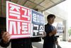 이종배 법치주의바로세우기행동연대 대표가 18일 오전 서울 서초구 서울중앙지방검찰청 현관 앞에서 윤미향 당선인 고발 기자회견을 하고 있다. (사진=뉴스1) |