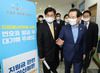 정세균 국무총리(오른쪽 두번째)가 19일 오후 긴급재난지원금 관련 현장 방문으로 세종시 한솔동 주민센터를 찾아 지원금을 신청하는 주민들을 만난 뒤 이동하고 있다. 연합뉴스 제공 |
