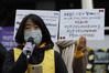 지난 2월26일 서울 종로구 중학동 옛 주한일본대사관 앞에서 열린 `일본군 성노예제 문제 해결을 위한 정기 수요시위'에서 윤미향 당시 정의기억연대 대표가 경과보고를 하고 있다. 이정아 기자 leej@hani.co.kr |