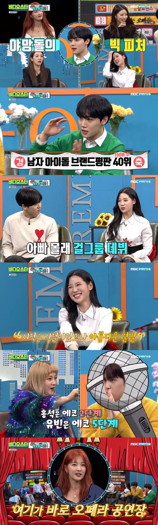 19일에 방송된 MBCevery1 '비디오스타'에서는 '면역력 쭉쭉! 엔돌핀 팡팡 예능돌 백신' 특집으로 꾸며지는 가운데 포미닛 출신의 손지현, 러블리즈 미주, 펜타곤 홍석, 베리굿 조현, 비오브유 송유빈, 골든차일드 장준이 출연해 눈길을 끌었다.