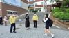 본관 건물로 들어서기 전 학생들은 길게 줄을 서서 발열 체크를 했다. 여기서도 2m 간격을 유지하도록 교사들이 나와서 지도했다. 오전 7시쯤부터 출근한 교사와 교직원도 의무적으로 발열 체크를 한 뒤 건물로 들어갔다고 한다.