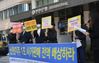 금융정의연대 회원과 라임사태 피해자들이 지난 3월 26일 서울 중구 신한은행 본점 앞에서 펀드 판매사인 신한금융투자에 대한 철저한 검찰조사와 피해액 전액 배상을 촉구하고 조용병 신한금융지주 회장의 연임을 반대하는 기자회견을 하고 있다. / 연합뉴스 |