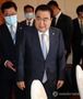 퇴임 기자간담회장 들어서는 문희상 의장 |