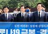 김두관 더불어민주당 의원(오른쪽부터)과 민홍철, 김정호 의원이 지난달 16일 4.15 총선 직후 경남 김해 봉하마을 노무현 전 대통령 묘역을 참배하는 모습. |